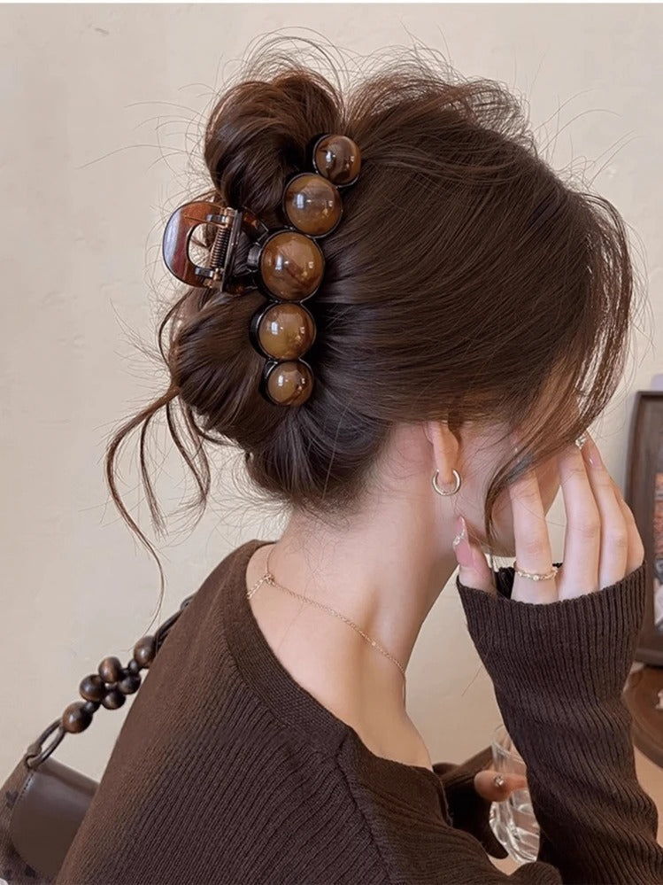 Moonica 1pc large pearl simple elegant acrylic hair claw clip. Perfect accessory for parties, commuting, or everyday outfit matching.