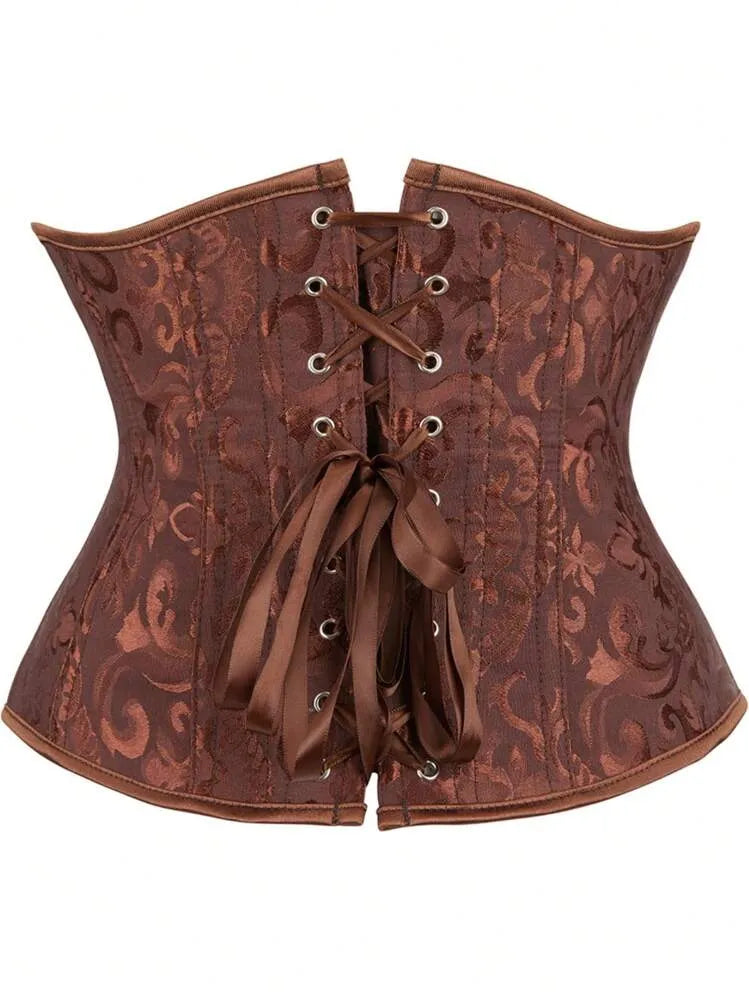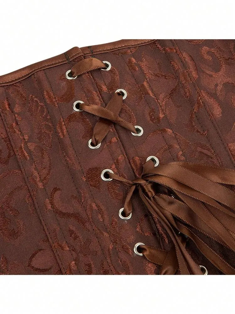 Moonica Vintage Brocade Corset – A palace-inspired body shaper corset with intricate floral embroidery and adjustable lace-up back. Crafted to enhance the waistline and accentuate feminine curves with timeless elegance. Perfect for vintage outfits, themed parties, or statement styling.